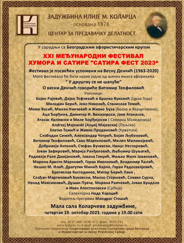 Plakat „Satira festa 2023“ Objavljeno 6. oktobra 2023. autor: humorisatira Posted in Uncategorized Podeli ovo: Click to share on X(Otvara se u novom prozoru) X Kliknite da podelite na Facebook-u(Otvara se u novom prozoru) Fejsbuk Sviđa mi se Učitavanje... Сродно