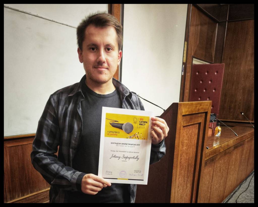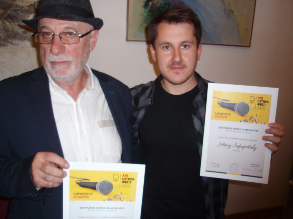 Po tradiciji, osmi put uručena je „Nagrada za satiričnu hrabrost“ Beogradskog aforističarskog kruga, čiji je dobitnik Ljubomir Živkov, satiričar, publicista, novinar i kolumnista iz Beograda.