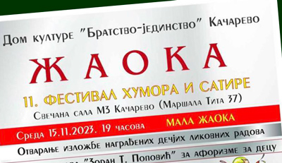 Festival Humora i satire “ŽAOKA” biće održan u petak 17. novembra 2023. godine u Svečanoj sali