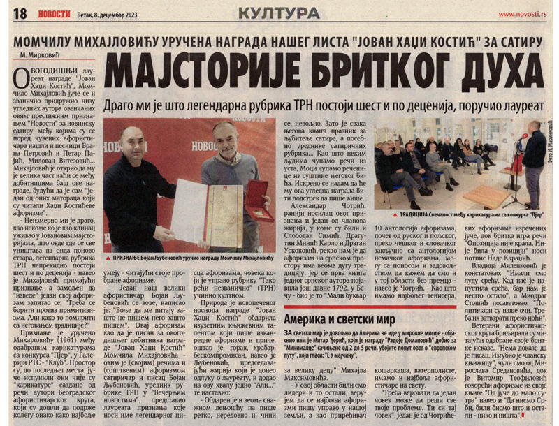 „Мајсторије бритког духа“, „Новости“ 8. децембар 2023. Objavljeno 8. decembra 2023.8. decembra 2023. autor: humorisatira Posted in Uncategorized Podeli ovo: Click to share on X(Otvara se u novom prozoru) X Kliknite da podelite na Facebook-u(Otvara se u novom prozoru) Fejsbuk Sviđa mi se Učitavanje... Сродно