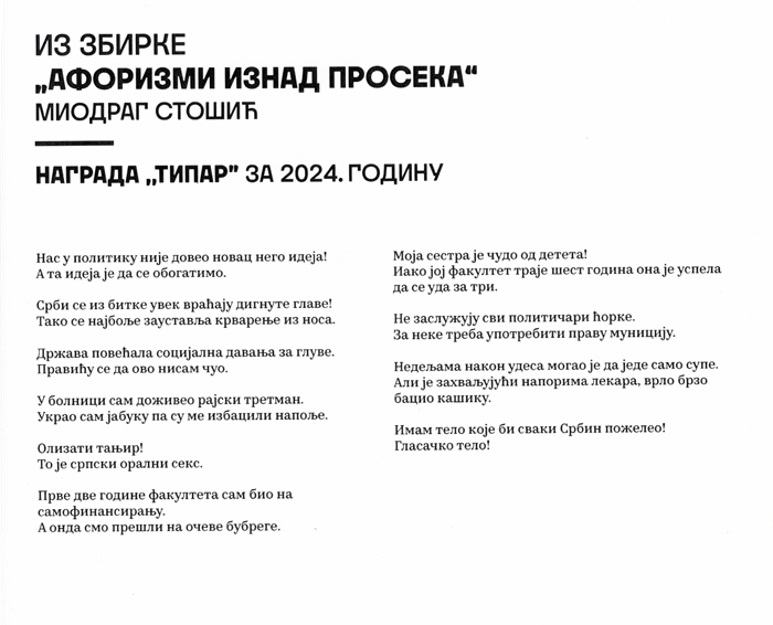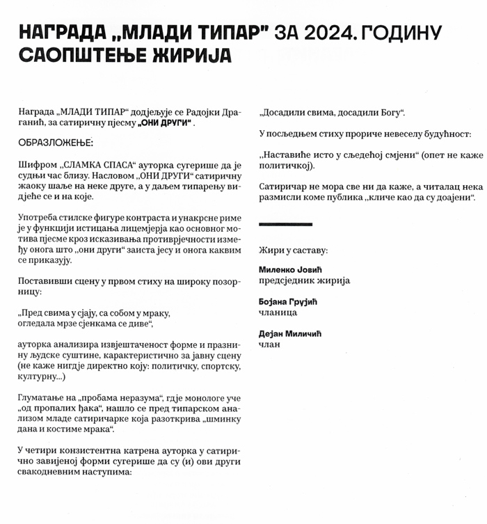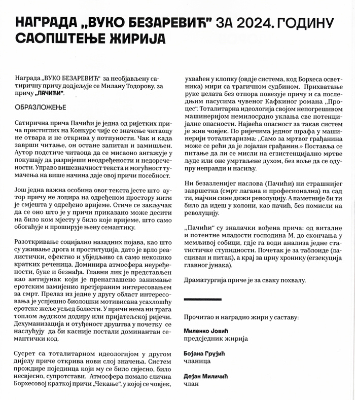 Награде, XXXVIII Дани хумора и сатире „Вуко Безаревић“ Пљевља 2024 Objavljeno 24. juna 2024. autor: humorisatira Posted in Uncategorized Podeli ovo: Click to share on X(Otvara se u novom prozoru) X Kliknite da podelite na Facebook-u(Otvara se u novom prozoru) Fejsbuk Sviđa mi se Učitavanje... Сродно