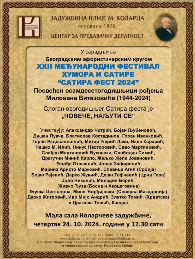 Плакати Сатира феста 2024 Objavljeno 16. oktobra 2024.16. oktobra 2024. autor: humorisatira Posted in Uncategorized Podeli ovo: Click to share on X(Otvara se u novom prozoru) X Kliknite da podelite na Facebook-u(Otvara se u novom prozoru) Fejsbuk Sviđa mi se Učitavanje... Сродно
