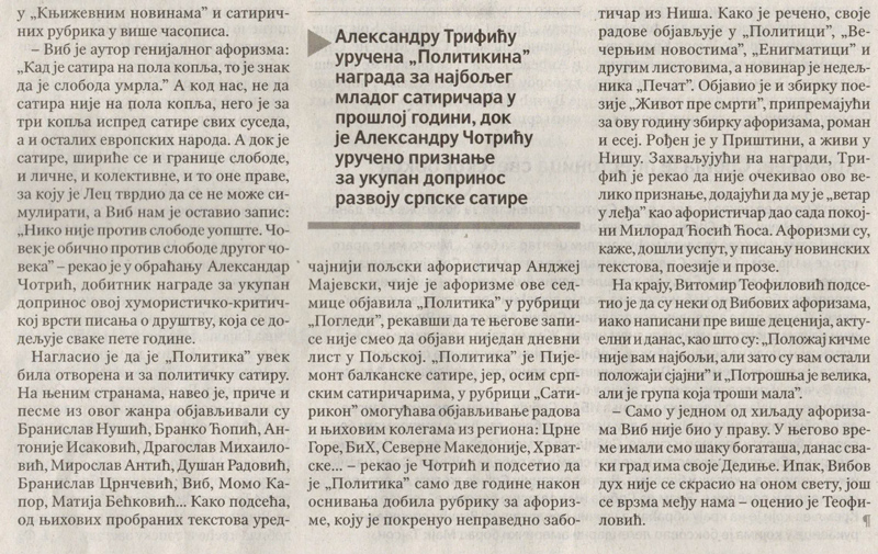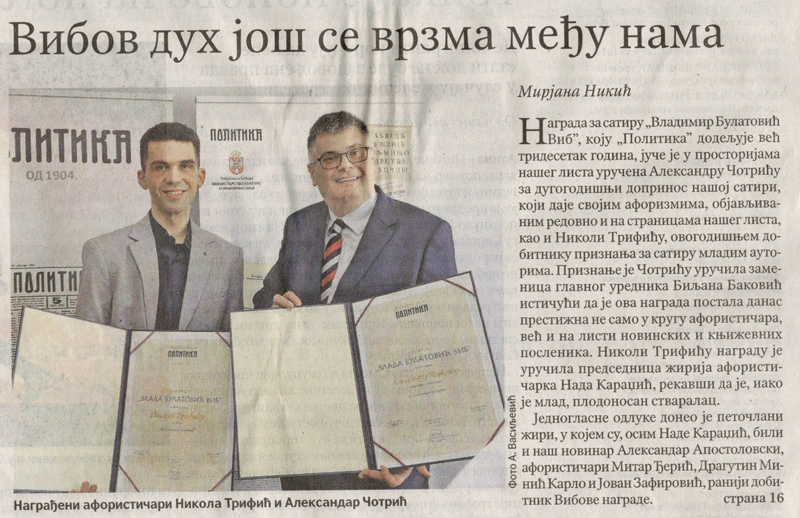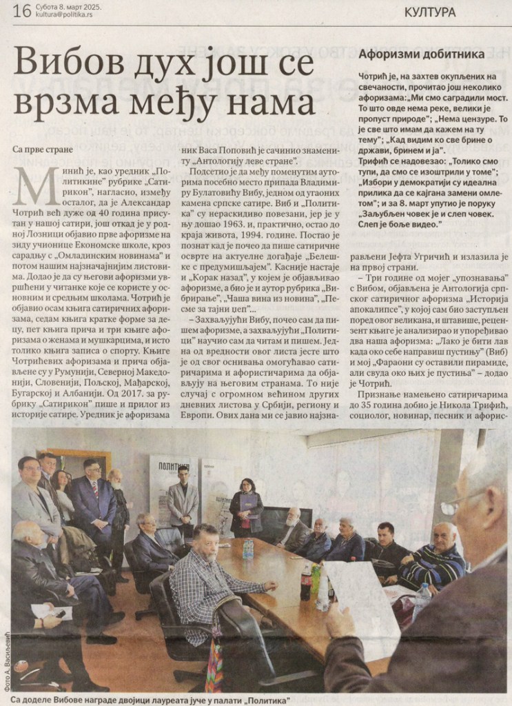 Вибов дух још се врзма међу нама Objavljeno 8. marta 2025. autor: humorisatira Posted in Uncategorized Политика, 8. март 2025. Podeli ovo: Click to share on X(Otvara se u novom prozoru) X Kliknite da podelite na Facebook-u(Otvara se u novom prozoru) Fejsbuk Sviđa mi se Učitavanje... Сродно
