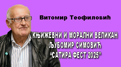 КЊИЖЕВНИ И МОРАЛНИ ВЕЛИКАН ЉУБОМИР СИМОВИЋ Objavljeno 14. oktobra 2025. autor: humorisatira Posted in Uncategorized ВИТОМИР ТЕОФИЛОВИЋ, САТИРА ФЕСТ 2025. Vitomir Teofilovic o Ljubomiru SimovicuПреузми Podeli ovo: Click to share on X(Otvara se u novom prozoru) X Kliknite da podelite na Facebook-u(Otvara se u novom prozoru) Fejsbuk Sviđa mi se Učitavanje... Сродно